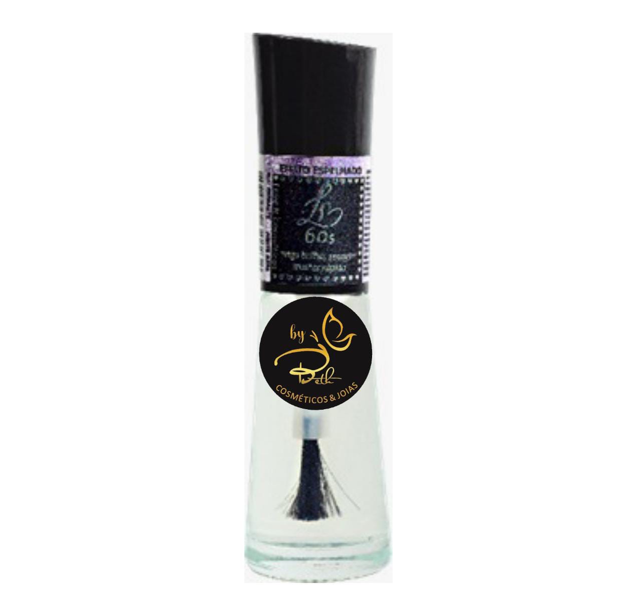 Esmalte finalizador extra brilho 60S efeito espelhado. Proteção da cor e brilho da esmaltação. Seca o esmalte em 60 segundos, evitando estragos logo após a esmaltação. Ação anti craquelamento e anti amarelamento. Intensifica a cor do esmalte. Maior durabilidade do esmalte.